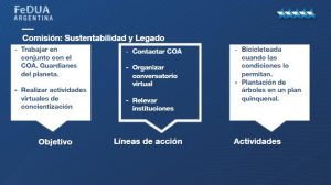 Por su parte, la Comisión de Deporte Sustentable y Legado está abocada a la planificación de actividades virtuales relacionadas a los deportes sustentables y los cuidados preventivos para disminuir el riesgo de contraer COVID-19.