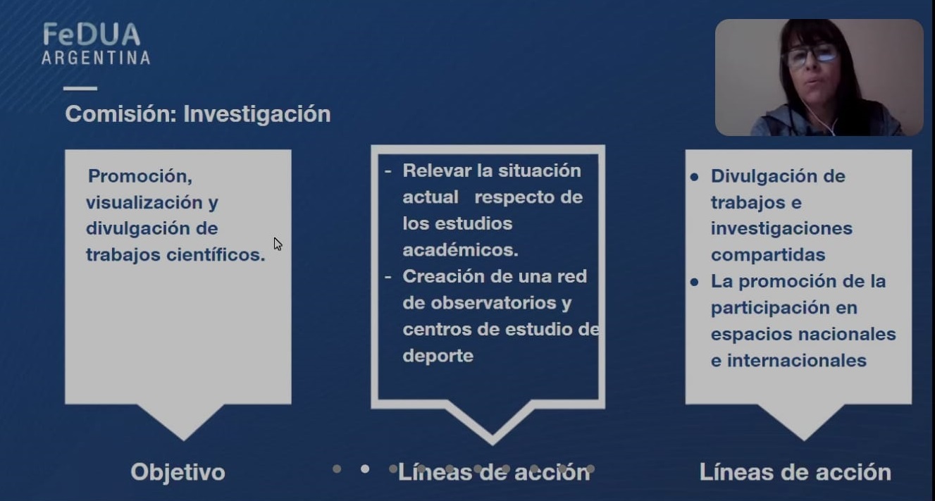En la actualidad, la Comisión de Investigación se encuentra trabajando en la promoción, visualización y divulgación de trabajos científicos vinculados al deporte universitario.