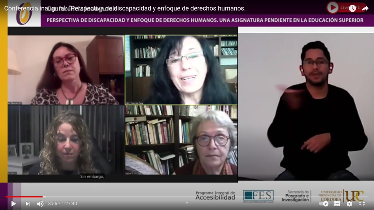 Como parte de las actividades abiertas a la comunidad del curso de posgrado “Perspectiva de discapacidad, derecho a la educación superior y formación profesional”, el 21 de mayo se llevó a cabo la apertura del curso y la conferencia inaugural “Perspectiva de discapacidad y enfoque de derechos humanos. Una asignatura pendiente en la educación superior”, a cargo de la Dra. Agustina Palacios. El evento fue transmitido por el canal YouTube de UPC y contó con interpretación en Lengua de Señas Argentina y subtitulado.