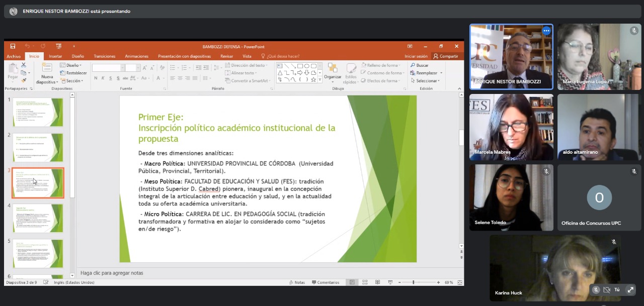 En el transcurso del mes de junio estarán participando, con modalidad virtual, de la instancia de defensa/entrevista aproximadamente 60 docentes de diferentes áreas de conocimiento, pertenecientes a la Facultad de Educación y Salud y a la Facultad de Educación Física.