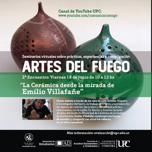 La Facultad de Arte y Diseño de la Universidad Provincial de Córdoba, desde su Escuela Superior de Cerámica Fernando Arranz, invita a participar de los “Seminarios virtuales sobre Prácticas, Experiencias e Investigación en las Artes del Fuego”.