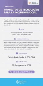 La instancia está dirigida a cofinanciar proyectos orientados al desarrollo e implementación, en territorio, de soluciones tecnológicas que mejoren la calidad de vida de la población, en particular, aquellas problemáticas que resultan de la pandemia.