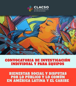Recuperando exitosas iniciativas de investigación anteriores, como el Programa de apoyo a la investigación comprometida “Las disputas por lo público en América Latina y el Caribe”, y como forma de apoyar la sistematización de experiencias orientadas a la recuperación y el fortalecimiento de lo público en un sentido amplio, CLACSO lanza la Convocatoria de Investigación individual y para equipos «Bienestar social y disputas por lo público y lo común en América Latina y el Caribe».