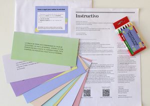 Materiales enviados a los domicilios de los participantes. El sobre contenía tarjetas de lectura, instructivo, tarjeta de pasos a seguir y regalo para los niños/as.