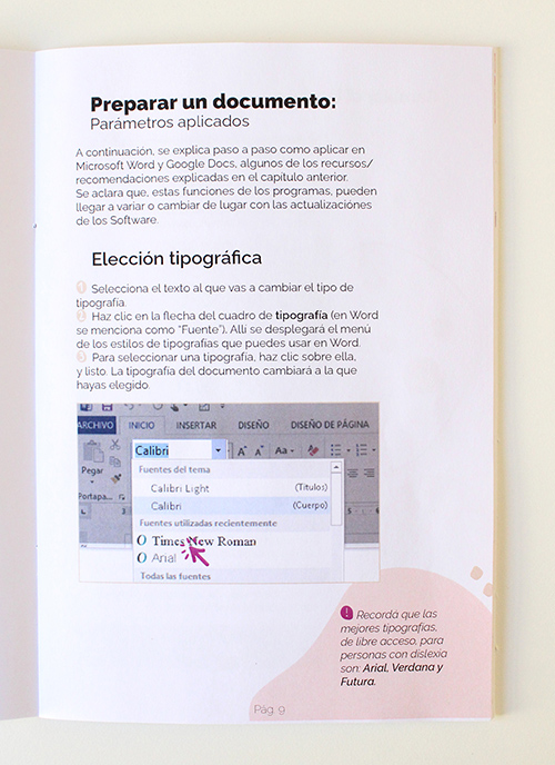 Con el fin de socializar los resultados obtenidos en esta investigación y los recogidos en investigaciones previas, se diseñó una pieza gráfica que expone los mismos y explica los parámetros para la adaptación de los materiales para niños/as con dislexia. Dicha pieza gráfica está destinada a las familias, profesionales y a la comunidad interesada, la cual es de acceso libre y gratuito.