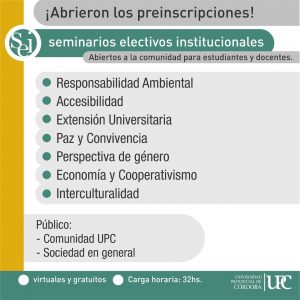 El público destinatario es tanto estudiantes de la Universidad Provincial como público en general interesado en estas temáticas. En el caso de los/as/es estudiantes, recordamos que la UPC incorporó, según RS 35/20 RS271/10 y Disposición 01/20, los seminarios electivos institucionales que serán obligatorios (una determinada cantidad entre varias opciones ofrecidas) para las carreras universitarias desde el 2021. También podrán cursarlo opcionalmente la totalidad de los y las estudiantes de la Universidad, incluso aunque no sea una exigencia de la currícula, y en esos casos se acreditarán como complemento al certificado analítico y se certificará como seminario de extensión.