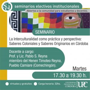 -Seminario: “La Interculturalidad como práctica y perspectiva: Saberes Coloniales y Saberes Originarios en Córdoba”.
