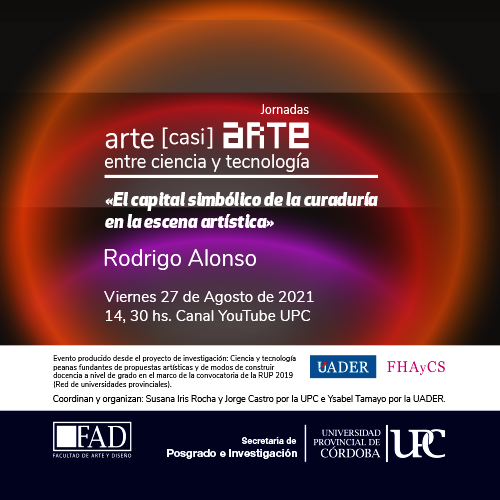 La Facultad de Arte y Diseño de la Universidad Provincial de Córdoba y la Facultad de Humanidades, Artes y Ciencias Sociales de la Universidad Autónoma de Entre Ríos invitan a asistir a las Jornadas Arte [casi] Arte entre ciencia y tecnología. Encuentros provincianos, que se realizarán en modalidad virtual, a través del Canal de YouTube institucional.