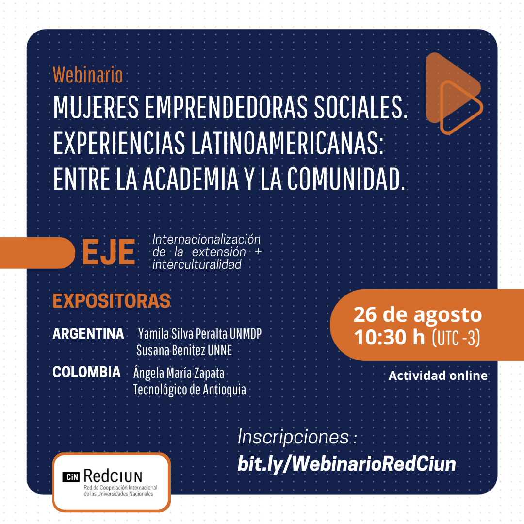 Webinario: Mujeres Emprendedoras sociales. Experiencias latinoamericanas: entre la academia y la comunidad.