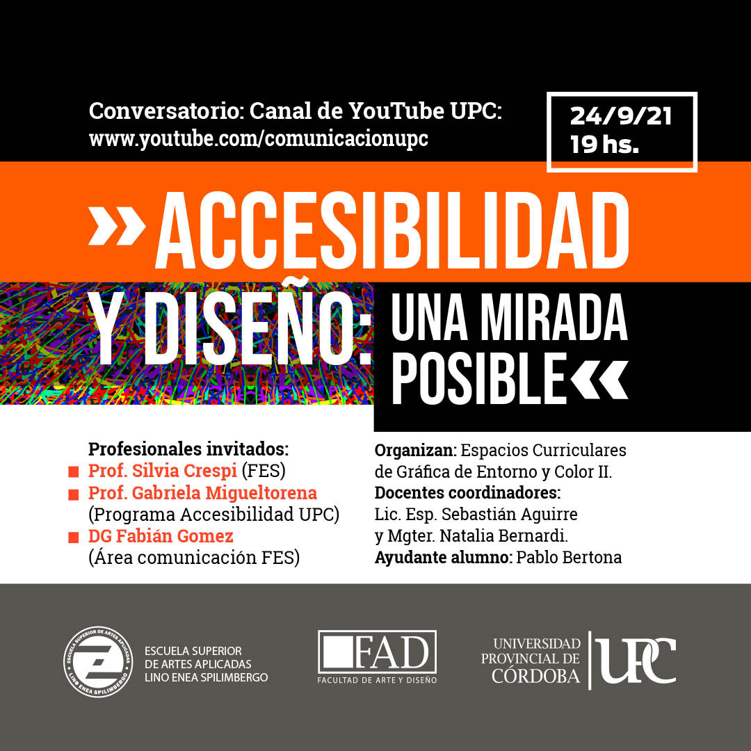 La Facultad de Arte y Diseño y la ESAA Lino E. Spilimbergo de la Universidad Provincial de Córdoba, invitan al Conversatorio: «Accesibilidad y Diseño, una mirada posible».