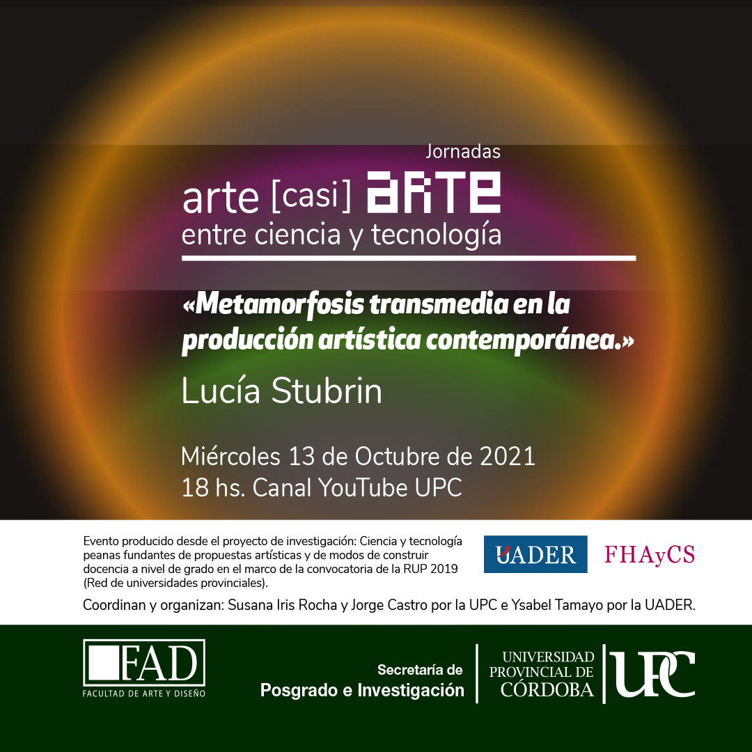 El Título de la disertación es: “Metamorfosis transmedia en la producción artística contemporánea” y estará a cargo de Lucía Stubrin