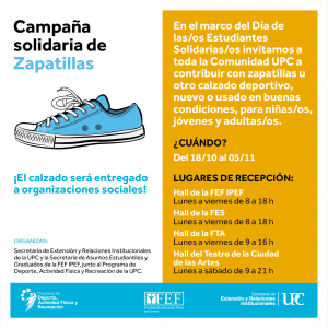 Las personas que quieran colaborar en esta campaña pueden acercar el calzado del 18 de octubre al 5 de noviembre en los siguientes lugares: