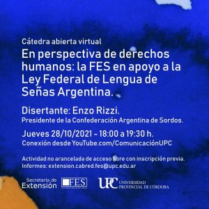 Desde las cátedras Historia y Perspectivas de la Educación Especial, Introducción a la Lengua de Señas Argentina y Abordajes educativos para las Personas sordas e Hipoacúsicas 1 del Profesorado Universitario de Educación Especial (PUEE), se invita a esta Cátedra abierta para proponer el diálogo entre estudiantes, docentes, el referente máximo de la Comunidad Sorda Argentina y la comunidad en general sobre el derecho lingüístico de las personas sordas.