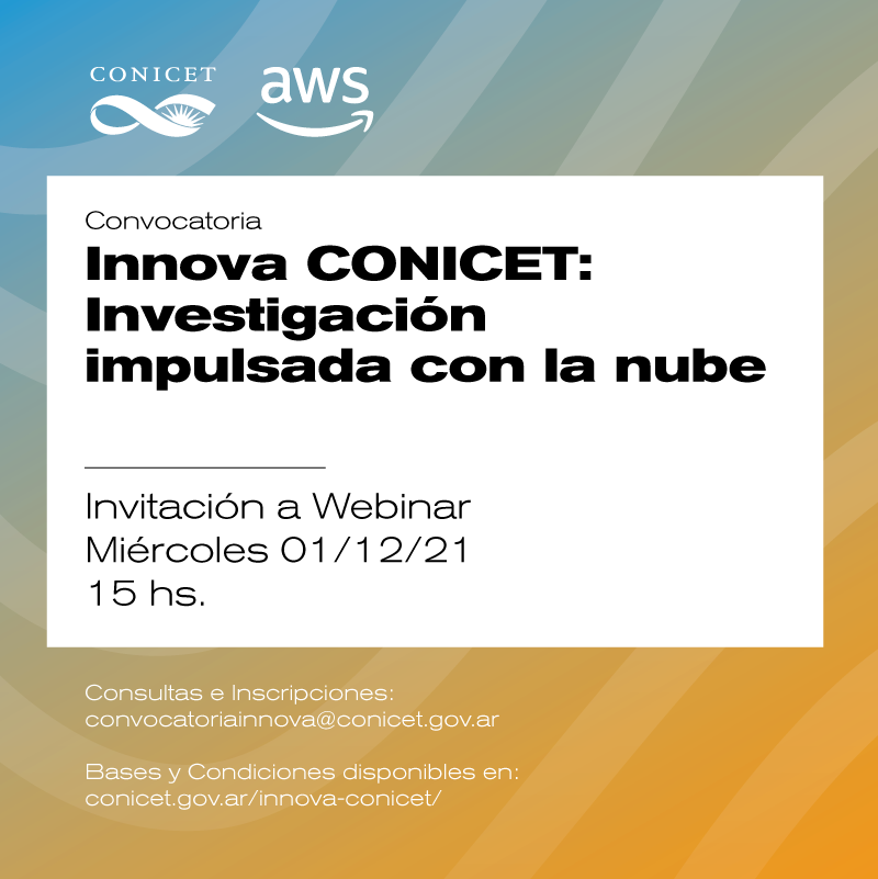 La Secretaría de Posgrado e Investigación de la Universidad Provincial de Córdoba comparten la invitación efectuada por el Consejo Nacional de Investigaciones Científicas y Técnicas (CONICET) y Amazon Web Services (AWS), quienes  se unen para apoyar proyectos de investigación que contribuyan al desarrollo científico y tecnológico y a la innovación del país. Se busca acelerar dichos proyectos a través de la infraestructura y de los servicios que Amazon Web Services brinda en la nube.