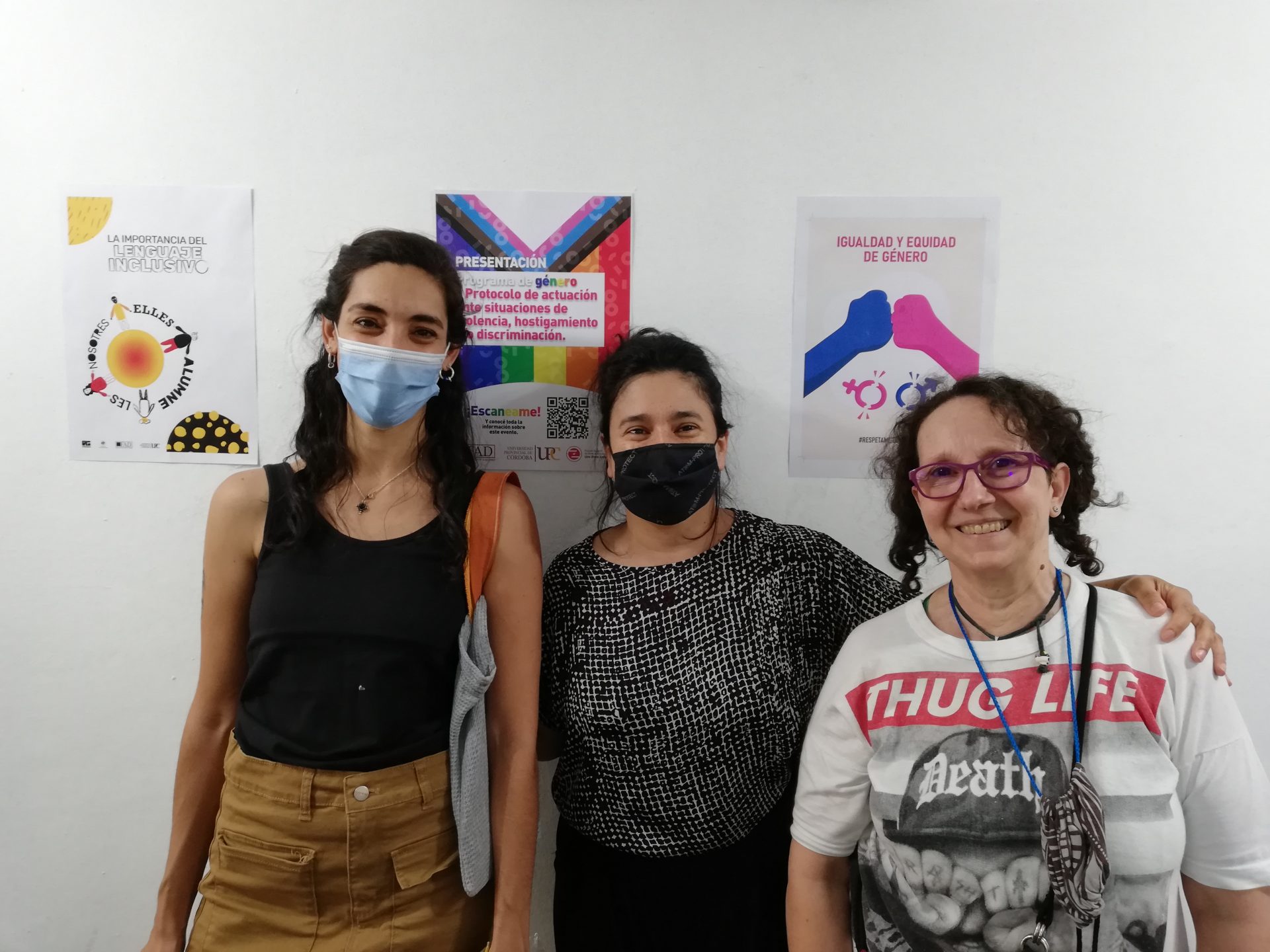 Acompañaron el acto de presentación las autoridades de la Universidad: rectora Raquel Krawchik, el director del Centro Universitario de Estudios Sociales, Darío Olmo, la Secretaria de Extensión, Mariela Edelstein y la directora del Centro de Competencias, Liliana Arraya, junto a docentes y estudiantes disfrutando de los afiches, las postales, los stickers y los gift´s.
