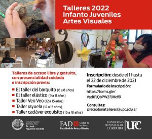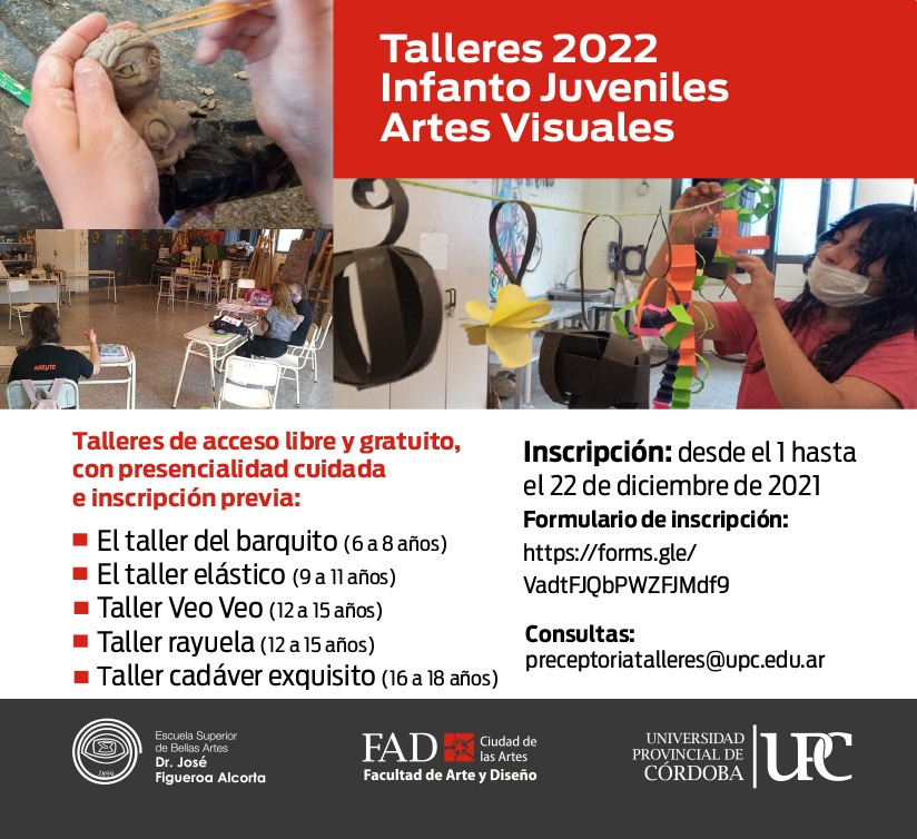 La Facultad de Arte y Diseño de la Universidad Provincial de Córdoba anuncia la apertura de las Inscripciones 2022 para los Talleres Infanto- Juveniles de Artes Visuales que se realizan tradicionalmente en la Escuela Superior de Bellas Artes “Dr. José Figueroa Alcorta”- FAD- UPC.
