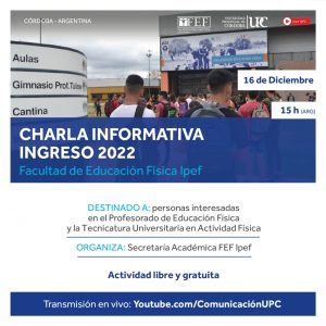 Durante el encuentro se brindará información sobre: el ingreso 2022 a las carreras de la FEF Ipef, el proceso de inscripción, la documentación a presentar, los requisitos académicos, las modalidades de cursado, entre otras.