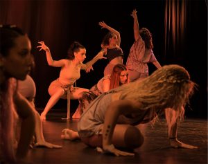 Cada año desde el espacio curricular Producción Artística, del 4º año del Profesorado de Danza, -de la Esc. Sup. Integral de Teatro “Roberto Arlt”- FAD- UPC-, a cargo de la Docente Ariana Andreoli y el adscripto Prof. José Guzmán, compartimos con el público procesos de creación en danza desarrollados por les estudiantes, acompañados por el equipo de cátedra. El escenario teatral se convierte en lo que aquí nombro como un aula fronteriza. Frontera entre el recorrido y el cierre de ese recorrido, entre la vida de estudiantes y la vida profesional en el campo de lo artístico, entre los ensayos y los discursos danzados manifestados ante espectadores. Practicar ponerse en escena, practicar los discursos de cuerpos poéticos, las escrituras divergentes, las disertaciones bailadas. El mundo sensible del escenario teatral y la convención escénica coloca a cada cuerpo en un desafío de experticia, atravesando la adrenalina de cruzar fronteras, el entusiasmo de compartir lo elaborado o las búsquedas que se lucen inaugurales, con el ensayo- error de la responsabilidad estética y poética. Para muches esta aula fronteriza, es el cruce final de ser estudiante a ser egresade de la carrera, un rito de pasaje.
