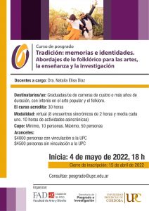 A cargo de la Esp. Lila Pagola. Modalidad: virtual. Inicia el 16 de marzo.