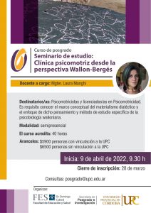 A cargo de la Mgter. Laura Manghi. Modalidad: semipresencial. Inicia el 9 de abril.
