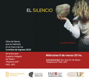 La Facultad de Arte y Diseño de la UPC comunica que se realizará una Obra de Danza en el contexto del Cursillo 2022 de la Escuela Superior Integral de Teatro “Roberto Arlt”- FAD- UPC.