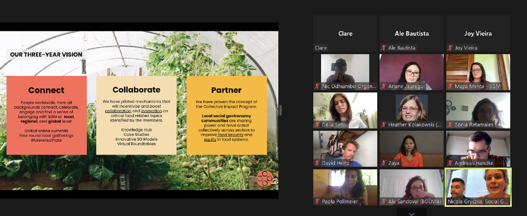 El pasado 23 de febrero se realizó la Primer Asamblea General del año 2022 del Movimiento de Gastronomía Social (SGM), red global de organizaciones de base, chefs, académicas/os, agricultores y empresas que utilizan el poder de los alimentos para el cambio social y de la cual, el Programa de Gastronomía Social de la UPC forma parte.