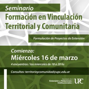 El mismo será un espacio de trabajo conceptual, dialógico y reflexivo que posibilitará acceder a textos, autores, experiencias y marcos teóricos en procura de fortalecer los diseños de proyectos extensionistas y acompañar la formación particular respecto de la vinculación territorial y comunitaria en sus procesos de curricularización.