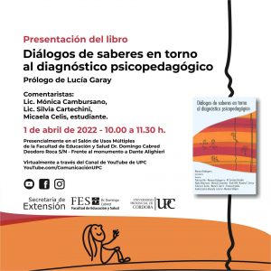 El equipo de las cátedras Diagnóstico Psicopedagógico I y II, se propuso concretar este proyecto de libro. El nombre no es casual, es una apuesta por el significado que adquiere el “diálogo de saberes”, en tres sentidos: en primer lugar desde las y los profesionales de la cátedra, con otras cátedras y especialistas en el tema del Diagnóstico psicopedagógico, tal es el caso de Patricia Vila, docentes de cátedras con las que se articula y ex miembros del equipo. En segundo lugar, los saberes que se entraman entre docentes, profesionales, estudiantes, padres y sujetos que demandan por una práctica diagnóstica a la y al profesional de la psicopedagogía y que quedan plasmados en los relatos y experiencias compartidas en los capítulos. Finalmente el diálogo entre los saberes de quienes nos constituimos en autoras y autores con aquellas y aquellos lectoras y lectores que busquen en sus páginas una posibilidad de intercambio, para reflexionar, acordar, disentir.