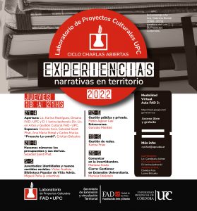 Desde el Laboratorio de Proyectos Culturales que pertenece al área de Cursos y Diplomaturas de Extensión de la Facultad de Arte y Diseño- UPC, les invitamos a este ciclo de Charlas Abiertas y puesta en diálogo con Protagonistas de Experiencias de Gestión  en territorios diversos tanto en su contexto geográfico como socio cultural.