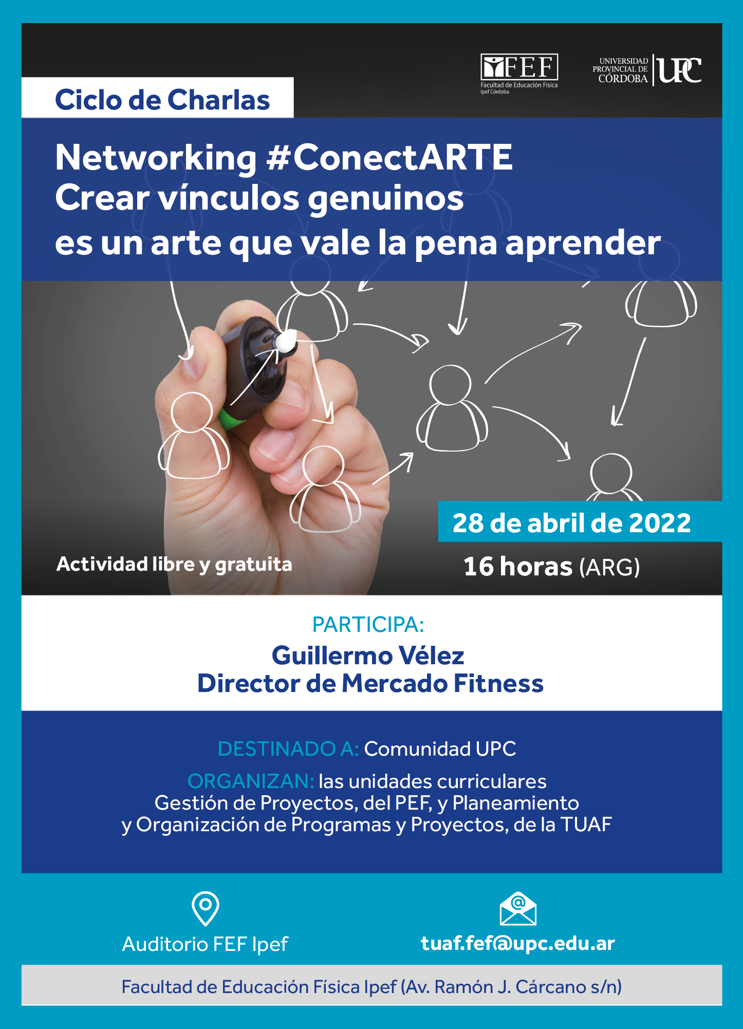 En esta oportunidad participará Guillermo Vélez, director de Mercado Fitness, quien disertará sobre la importancia de la gestión de las relaciones sociales para llevar adelante un emprendimiento en relación a la actividad física.
