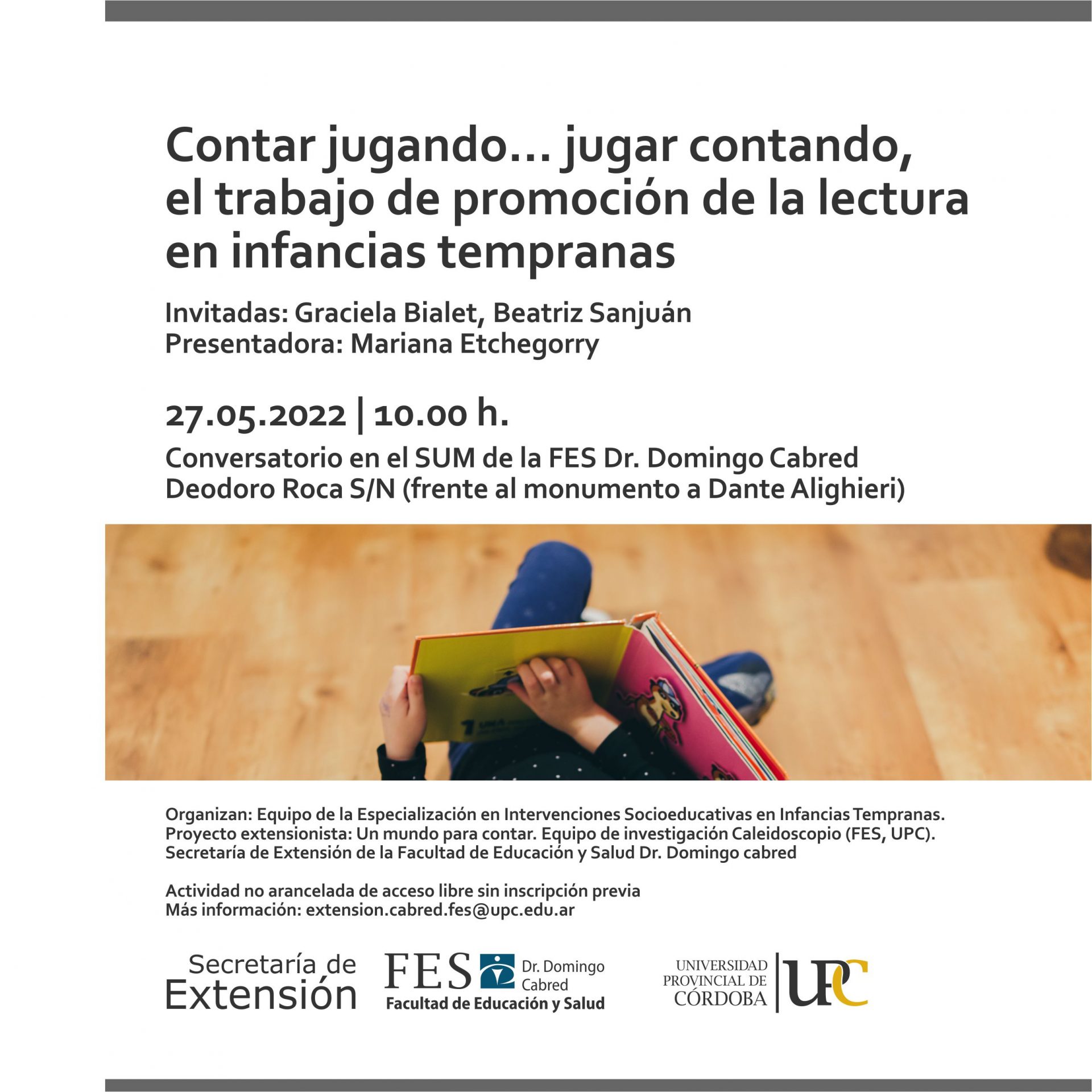 Organizan: Equipo de la Especialización en Intervenciones Socioeducativas en Infancias Tempranas. Proyecto extensionista: Un mundo para contar. Equipo de investigación Caleidoscopio (FES, UPC). Secretaría de Extensión de la Facultad de Educación y Salud Dr. Domingo Cabred.