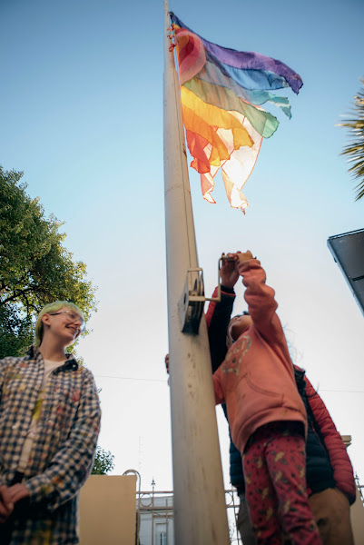 Además, junto a niñes, jóvenes y sus familias pertenecientes al Programa provincial de las niñeces y juventudes trans y no binarias, se izó la bandera de la diversidad en el mástil principal de Ciudad de las Artes.