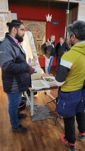 Héctor Rodriguez, maestro papelero y responsable del Molino de Papel de UPC junto a los pasantes Romina Juárez y Nahir Canelo, estudiantes del Profesorado en Artes Visuales de la Facultad de Arte y Diseño de la UPC, recibían a los visitantes y les explicaban acerca de la producción sustentable y artesanal de papel a partir de fibras vegetales como paja brava, totora, cáscaras de cebollas, entre otras, utilizando una técnica milenaria, con un sistema de filtrado para el recupero del agua, y con un lugar de secado tipo invernadero. El espacio/aula del Molino en la universidad fue construido a partir de técnicas constructivas sustentables. Para visitar el espacio comunicarse a [email protected]