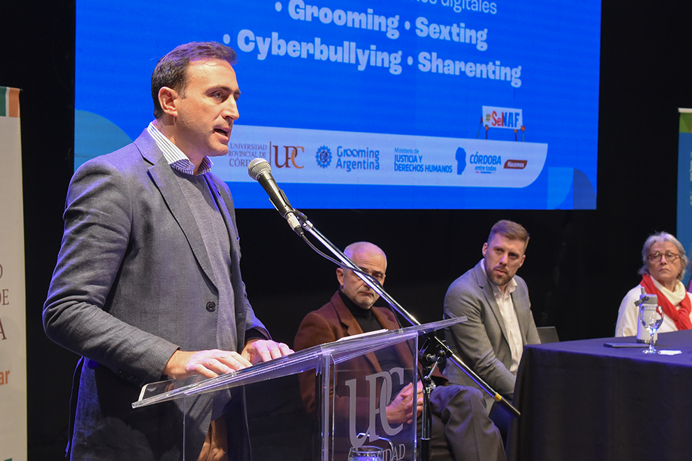 El acto de lanzamiento tuvo lugar en el Teatro Ciudad de las Artes de la UPC y fue presidido por el Ministro de Justicia y Derechos Humanos de la provincia de Córdoba, Julián López, acompañado por la Rectora de la Universidad Provincial de Córdoba, Raquel Krawchik, el presidente de Grooming Argentina, Hernán Navarro y la titular de SeNAF, Georgina Tavella.