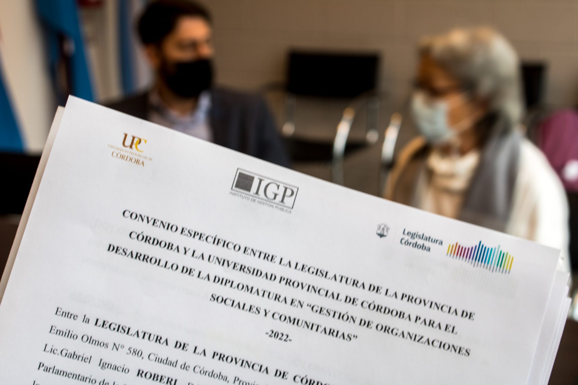 La Universidad Provincial de Córdoba, a través de su Instituto de Gestión Pública (IGP), firmó un nuevo convenio específico junto a la Legislatura de la Provincia de Córdoba para desarrollar una nueva instancia de formación: la Diplomatura en Gestión de Organizaciones Sociales y Comunitarias.