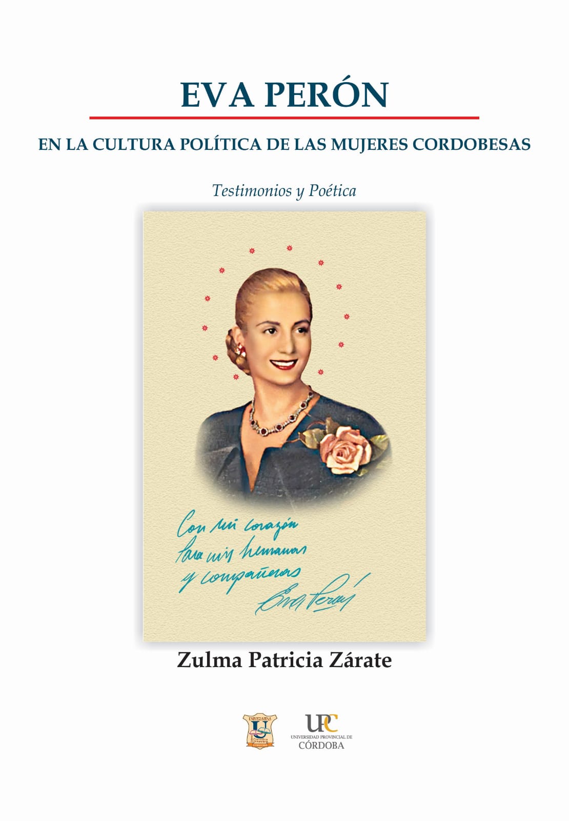 Esta publicación cuenta con el aval institucional de la UPC y consiste en la recopilación de fragmentos de testimonios de diez mujeres de la provincia de Córdoba, que fueron contemporáneas y compañeras de Eva Perón, a su vez protagonistas en la creación del Partido Peronista Femenino y de la Rama Femenina del Partido Justicialista de nuestra provincia. Acompañan estos testimonios, la escritura alusiva de textos poéticos de la autora; estableciendo así un diálogo sobre aquella gesta emancipatoria, que hicieron realidad las mujeres argentinas, en una instancia de organización y formación en el campo de la cultura política, sin antecedentes a nivel local, nacional e internacional.