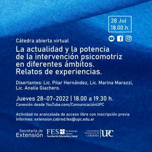 Para cerrar la jornada se transmitió en vivo a través del Canal de YouTube de la Universidad, la Cátedra abierta virtual La actualidad y la potencia de la intervención psicomotriz en diferentes ámbitos. Relatos de experiencias.