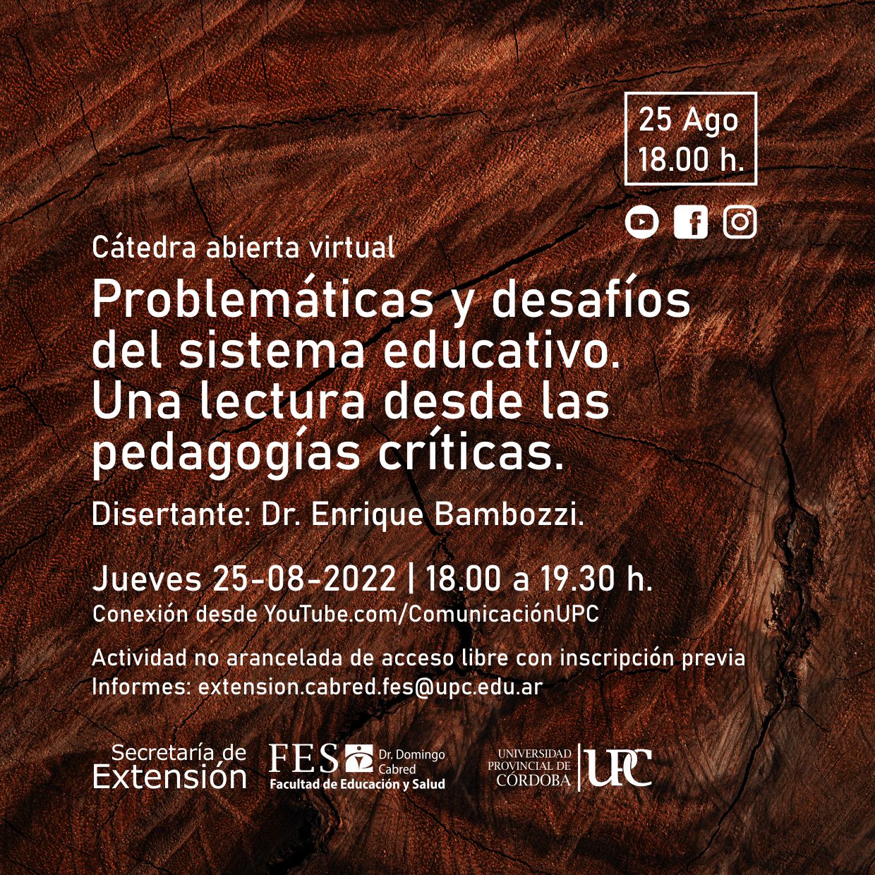 Destinado a: Estudiantes, egresadas/os y docentes de la Facultad de Educación y Salud Dr. Domingo Cabred (FES) y de la Universidad Provincial de Córdoba (UPC), público en general.