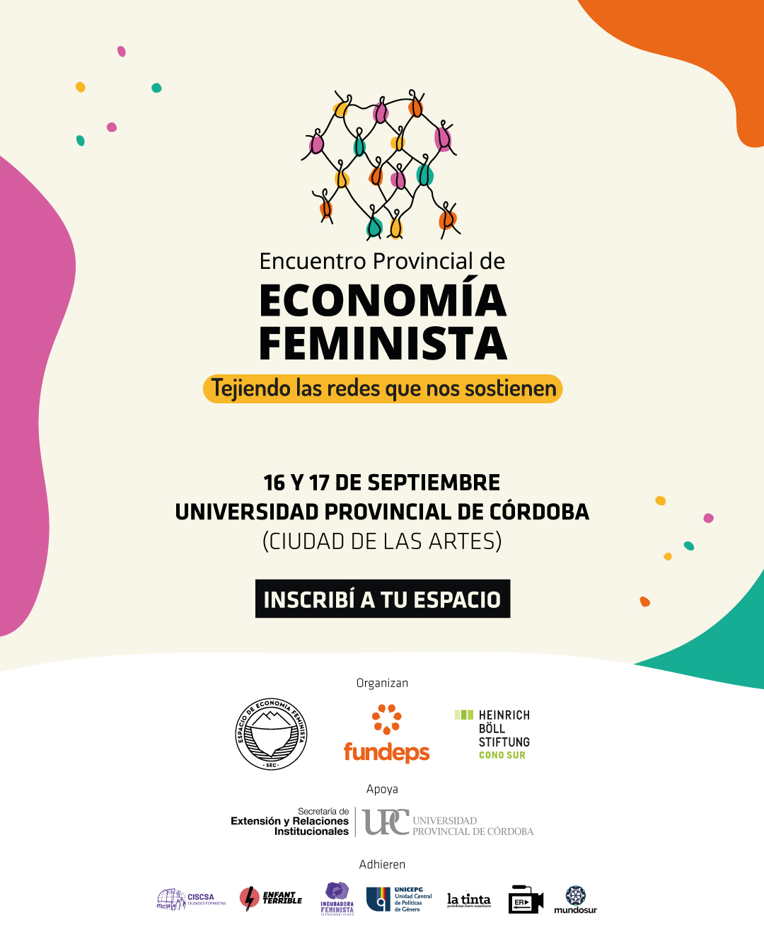 El 16 y 17 de septiembre se realizará en la Universidad Provincial de Córdoba el Encuentro Provincial de Economía Feminista, organizado por Fundeps, el Espacio de Economía Feminista y la Fundación Heinrich Böll, con apoyo de la Secretaría de Extensión y Relaciones Institucionales de la UPC. Participarán en el encuentro diversos espacios autogestivos.