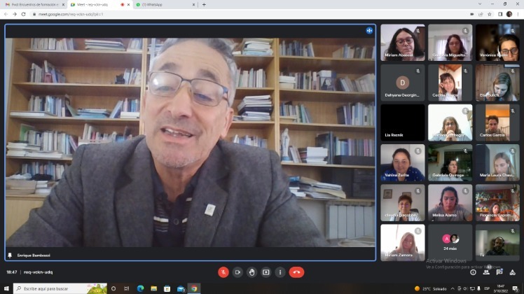 En este encuentro nos acompañó el Vicerrector de la Universidad Provincial de Córdoba, Dr. Enrique Bambozzi quien realizó la apertura de este espacio y dio la bienvenida a les colegas capacitadores de la UBA así como a les 45 cursantes provenientes de la Facultades de Educación y Salud, Arte y Diseño, Turismo y Ambiente y de Educación Física.