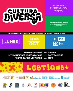 En este sentido, el 31 de Octubre de 16 a 20hs se llevará adelante una jornada que contará con stands, feria, expresiones artísticas, testeos de VIH y Sífilis, cerrando el encuentro con un conversatorio integrado por referentes de la comunidad LGBTIQNB+ y la firma de un documento donde se expresen las necesidades que surjan del mismo, orientadas a la permanencia y accesibilidad de dicha comunidad a la educación superior.