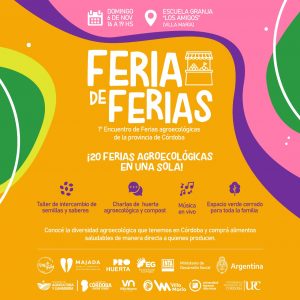 La “feria de ferias” será un espacio de encuentro e intercambio para todas las familias de Villa María que deseen además de adquirir productos agroecológicos, intercambiar semillas criollas, saberes sobre huerta, escuchar música en vivo de artistas locales y conversar cara a cara con productores y productoras de toda la provincia.