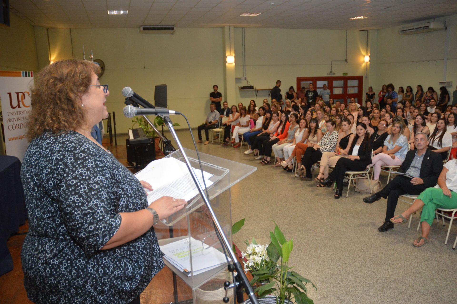 En el acto estuvieron presentes el vicerrector de la Universidad, Dr. Enrique Bambozzi; la secretaria de Administración General y Recursos Humanos de la UPC, Lic. Eugenia Agostini, la secretaria académica de la UPC Mgtr. Patricia Budde. Por su parte, desde la Facultad de Educación y Salud Dr. Domingo Cabred, estuvieron presentes la decana de la facultad, Mgtr. Mariana Etchegorry; la secretaria general Esp. Gabriela Quiroga, la secretaria académica, Lic. María Eugenia López; la secretaria de posgrado e investigación Mgtr. Miriam Abascal; la secretaria de extensión Mgtr. Nora Bezzone y las directoras de carreras Lic. Mariana Villagra, Esp. Ana Chiappero y Lic. Estela Méndez, además de docentes de la casa y familiares de las y los graduadas y graduados.