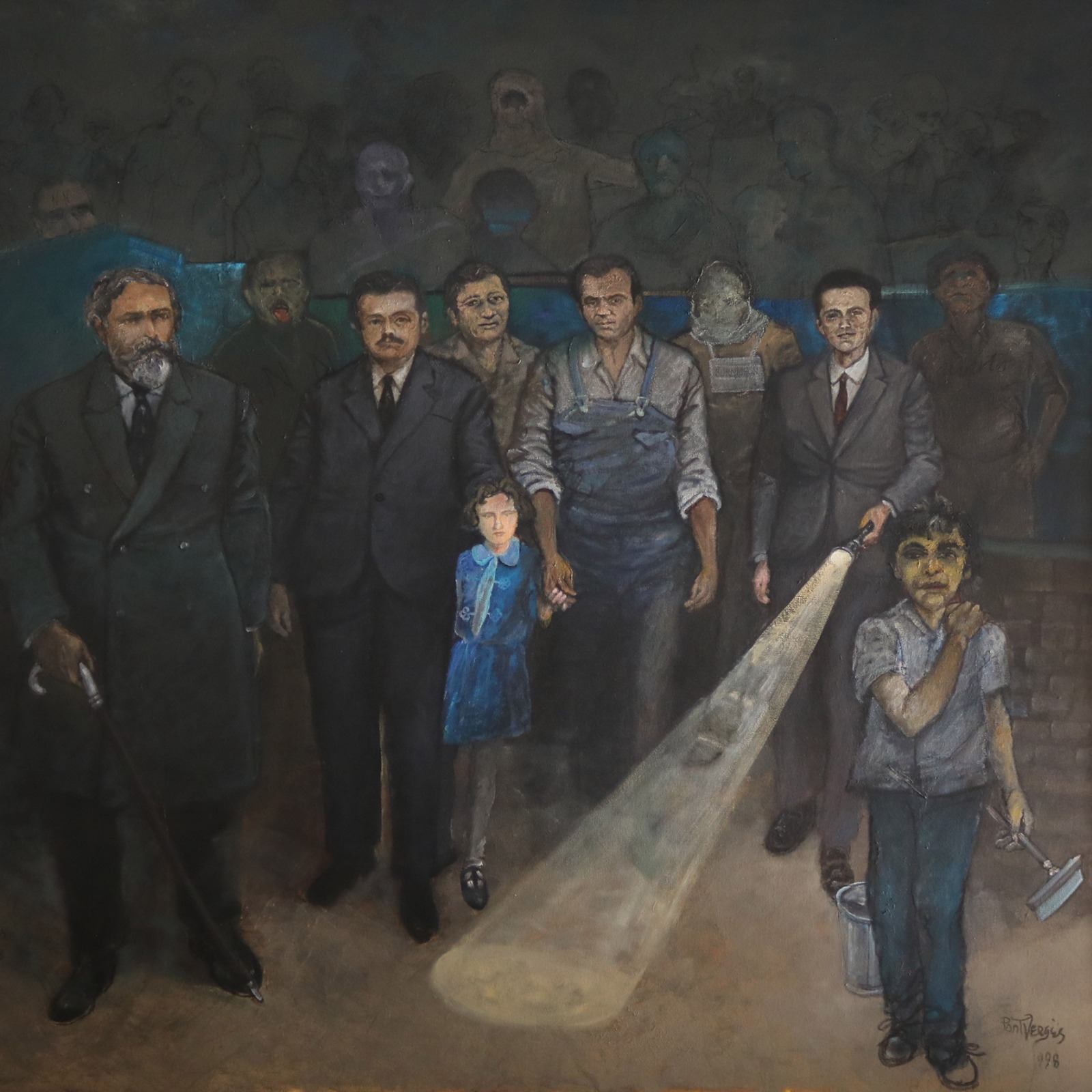 Luego, en el hall de ingreso a la UPC, nos encontramos para debatir sobre la pintura Sombras, ronda nocturna de los santos inocentes (1998), del artista Pedro Pont Vergés, emplazada en dicho espacio. En ambas propuestas, guiará Verónica Molas.