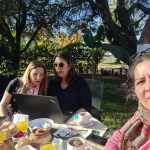 En el recorrido entrevistaron en San Marcos Sierras a DANI BUELINK TULIAN (@cacique.tulian), arropero y elaborador de harinas y cafés de algarroba, mistol y chañar entre otros; en La Higuera a DANIEL GOMEZ (pueden encontrarlo en su parador frente al vado del río de la Higuera), productor de quesillo, dulces y arrope y en el Paraje Bella Vista se reunieron con JUANA BAZÁN, donde dialogaron sobre recetas patrimoniales como el Patapichico y la Sastaca. Además, dialogaron con docentes de la Escuela de la Familia Agraria (EFA), ubicada en Tuclame, para coordinar acciones vinculadas a la cocina e identidad con estudiantes y docentes.