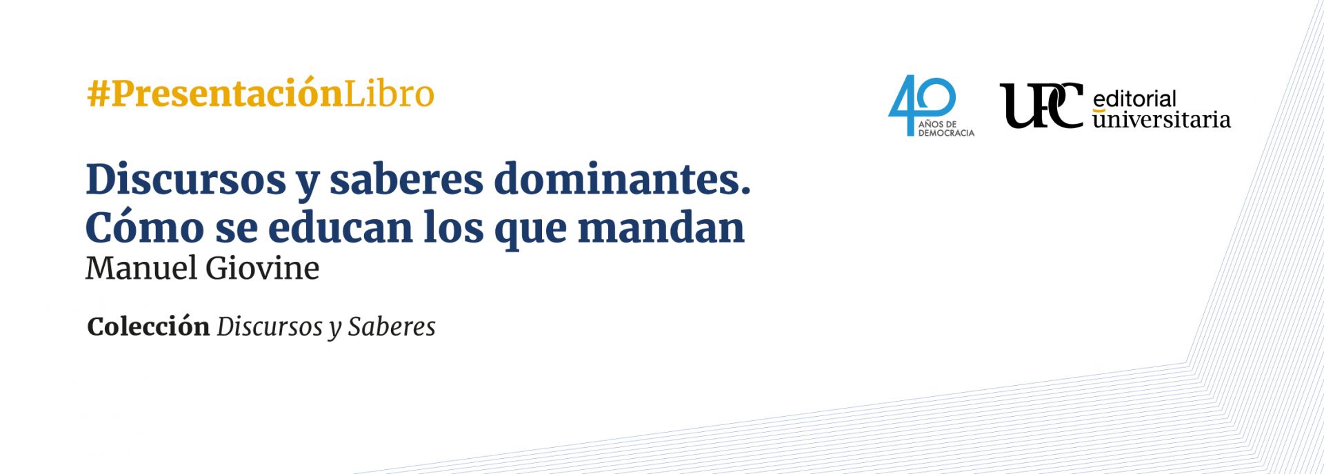 El jueves 8 de junio a las 15:30 hs Argentina y en modalidad virtual, la colección Discursos y Saberes, nacida de la conjunción de esfuerzos de dos universidades públicas (UNC y UPC), vuelve al ruedo y al territorio, esta vez para presentar el libro de Manuel Giovine.