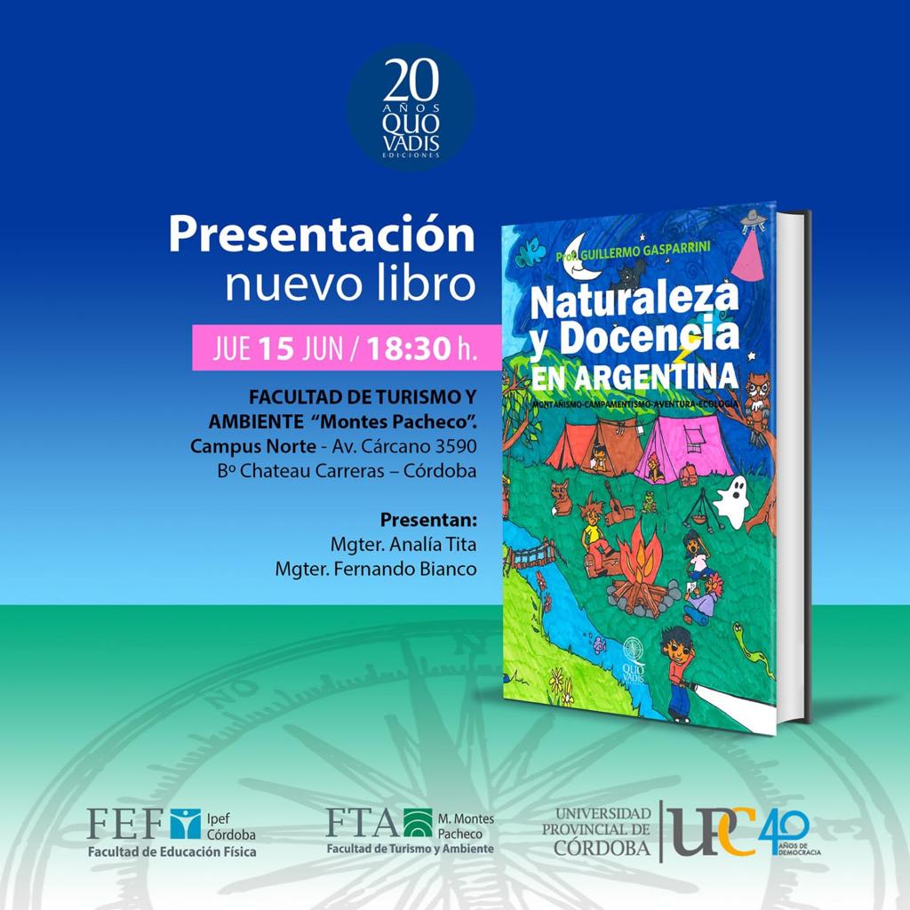 La presentación estará a cargo de la Mgter. Analía Tita y el Mgter. Fernando Bianco, el día jueves 15 de junio a las 18.30 hs en el Salón de Actos de la Facultad de Turismo y Ambiente “Marcelo Montes Pacheco” (Av. Ramón J. Cárcano 3590, ciudad de Córdoba)..