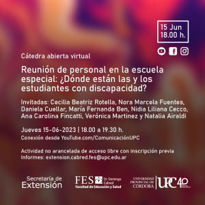 En el marco de la Unidad curricular Práctica Docente 2 del 2do año de la carrera del Profesorado Universitario de Educación Especial y como parte constitutiva de la propuesta de cátedra se ofrecen espacios con proyección social destinado a docentes, estudiantes en formación docente y público en general para debatir temas de actualidad referidos a la educación especial como modalidad del sistema educativo, en contextos situados de educación formal obligatoria.