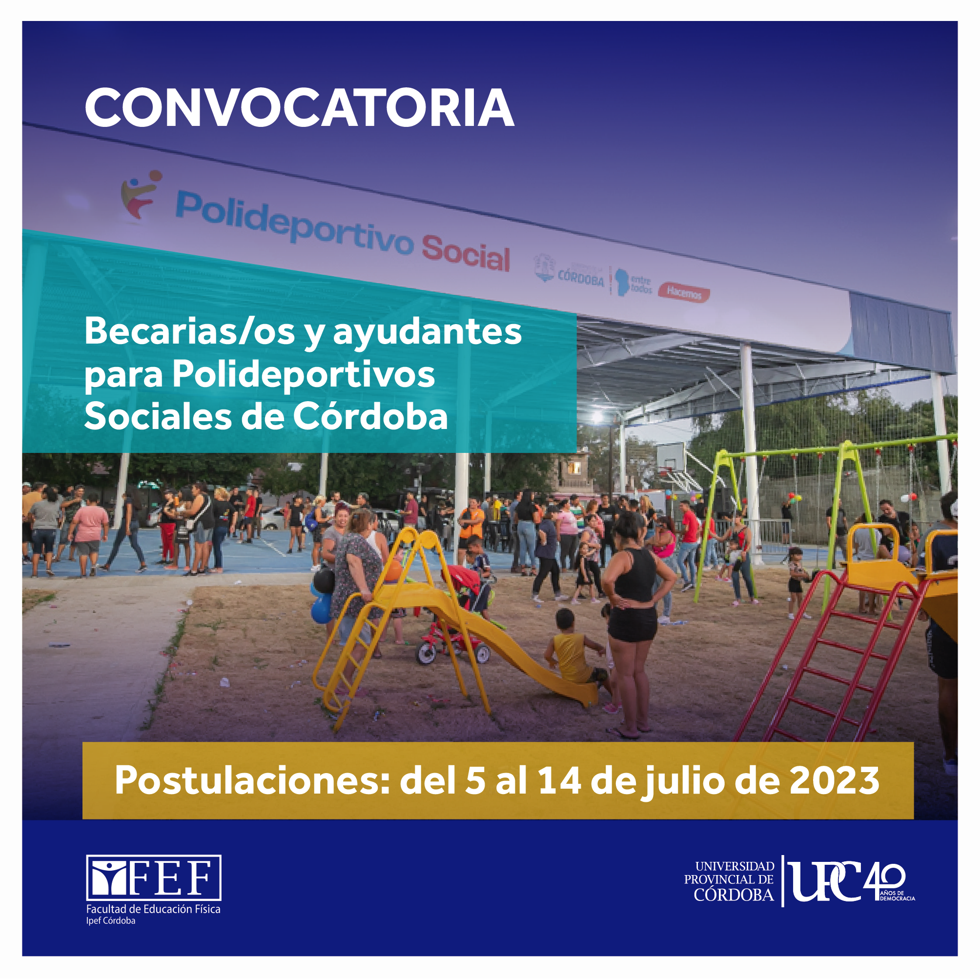 La Facultad de Educación Física Ipef y la Secretaría de Extensión y Relaciones Institucionales de la Universidad convocan a Profesoras/es de Educación Física para desempeñarse como becarias/os deportivas/os rentadas/os en las actividades que se realizan en los Polideportivos Sociales del Gobierno de la Provincia de Córdoba.