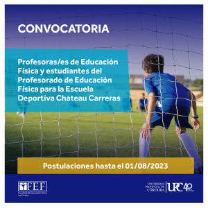 La Facultad de Educación Física Ipef (FEF Ipef) de la Universidad Provincial de Córdoba convocan a Profesoras/es de Educación Física y estudiantes de 3º y 4º año del Profesorado de Educación Física, para desempeñarse como docente en la Escuela Deportiva Chateau Carreras de la ciudad de Córdoba.